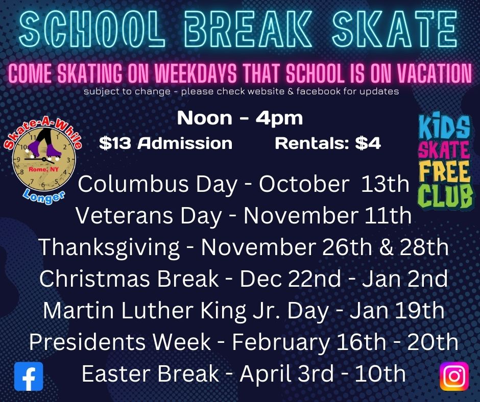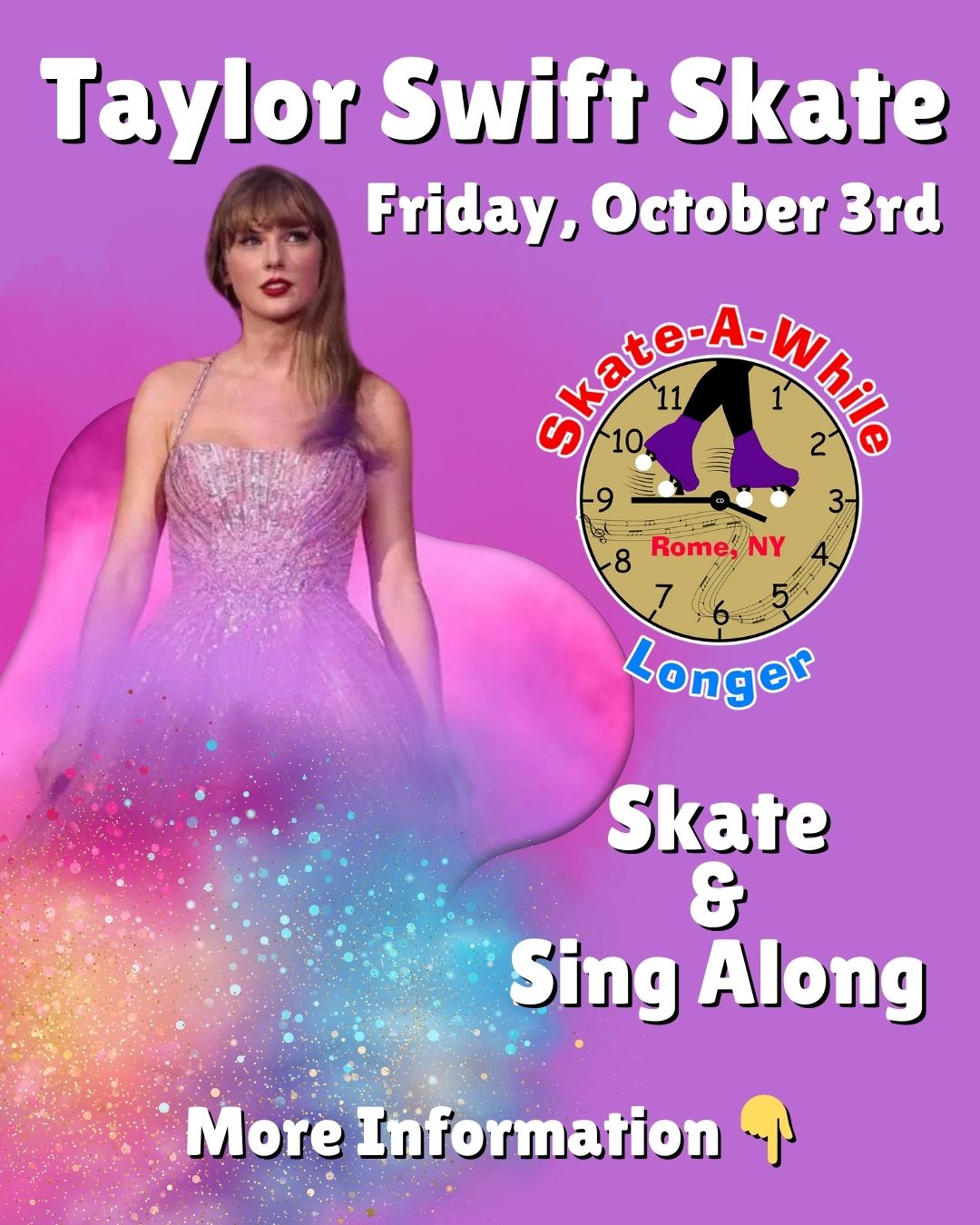 Skate-A-While Longer, LLC 220 Ridge St., Rome, NY, United StatesTaylor Swift Skate Night! Friday, October 3rd | 7:00 – 10:00 PM Skate-A-While Longer – Are you ready for it? Calling all Swifties! Grab your glitter, friendship bracelets, and besties, and get ready to skate the night away to ALL your favorite Taylor Swift eras – from Fearless to 1989 to Midnights! DJ spinning ALL […]